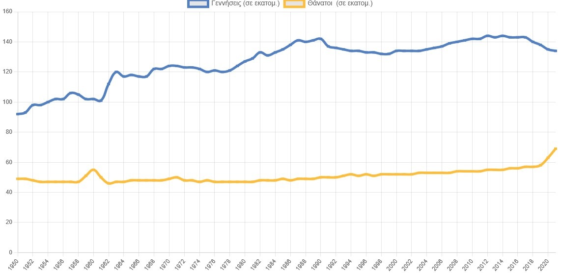 Γράφημα 12: Γεννήσεις και θάνατοι σε παγκόσμια κλίμακα (σε εκατομμύρια)