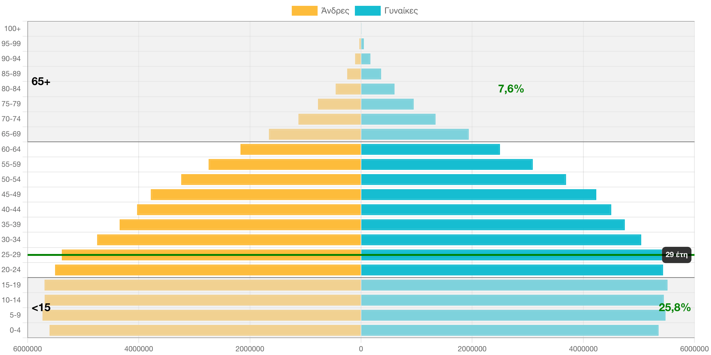 Ένας άλλος, σημαντικός, παράγοντας που επηρεάζει την εξέλιξη ενός πληθυσμού είναι η ηλικιακή δομή του, δηλαδή η κατανομή του πληθυσμού ανά ηλικία. Όσο πιο νεανικός είναι ένας πληθυσμός (και άρα υπάρχουν περισσότεροι άνθρωποι σε αναπαραγωγική ηλικία) τόσο μεγαλύτερη η δυναμική του.