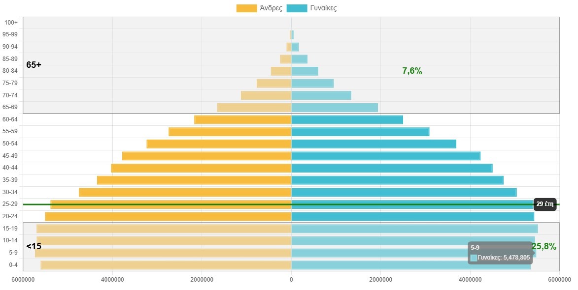 Σημείωση: Στην πρώτη στήλη, η μεταβολή της θέσης της χώρας στην παγκόσμια κατάταξη ως προς τον πληθυσμό