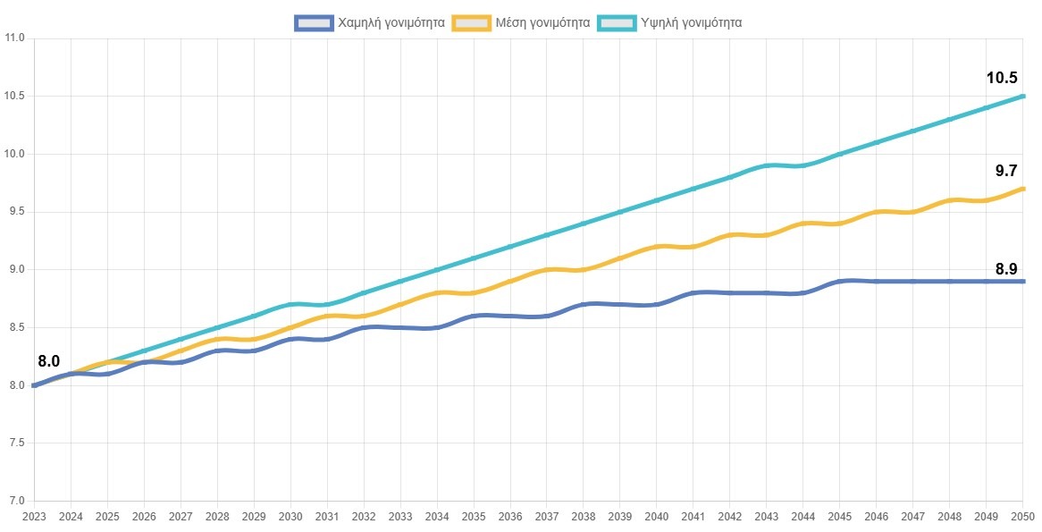 Το 2050 ο παγκόσμιος πληθυσμός αναμένεται ότι θα κυμανθεί μεταξύ 9 και 10,5 δισεκατομμυρίων, δηλαδή περίπου 1 με 2,5 δισεκατομμύρια υψηλότερος από ό,τι είναι σήμερα.