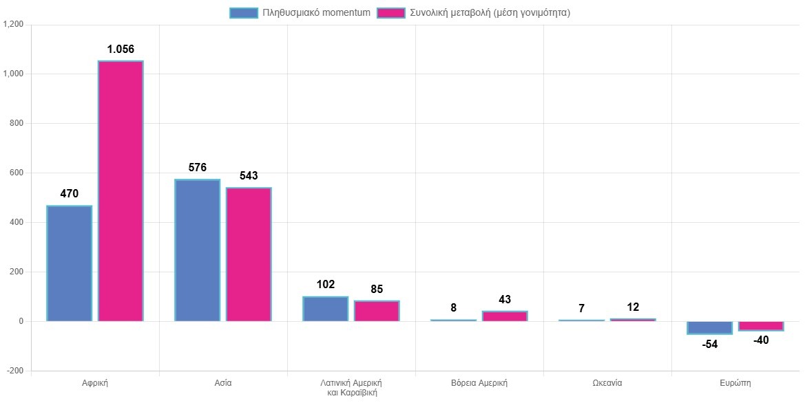 Ας δούμε, όμως, πώς θα προκύψει αυτή η αύξηση του πληθυσμού και πώς θα συμβάλλει κάθε ήπειρος σε αυτή.