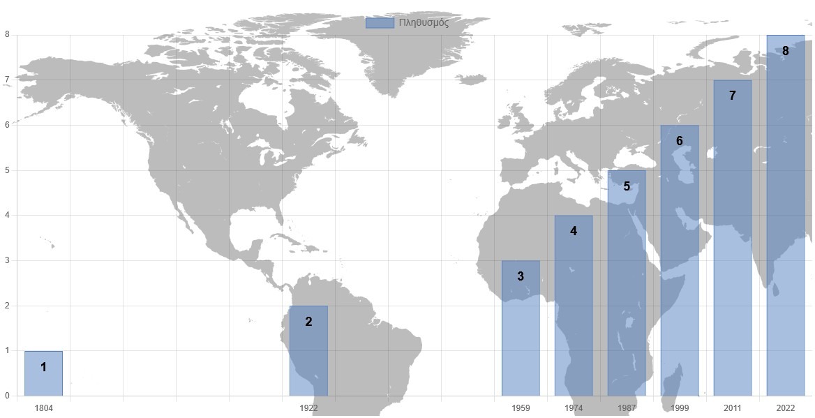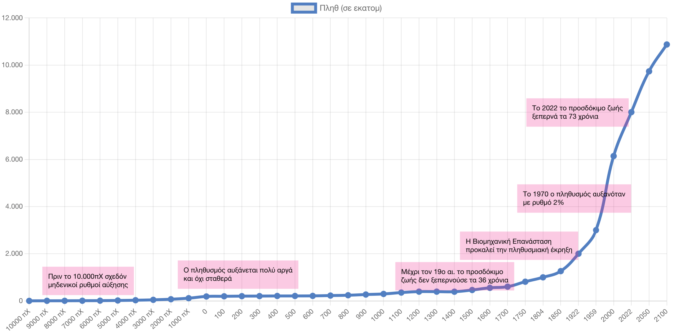 Γράφημα 2: Από το 1 στα 8 δισεκατομμύρια σε μόλις 220 χρόνια